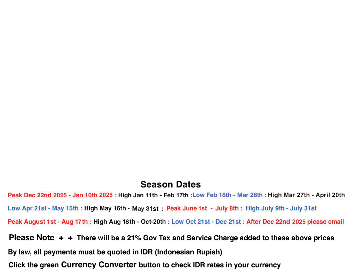 If THE LUXE BALI is not available at these times we will inform you of alternative dates around that time.
