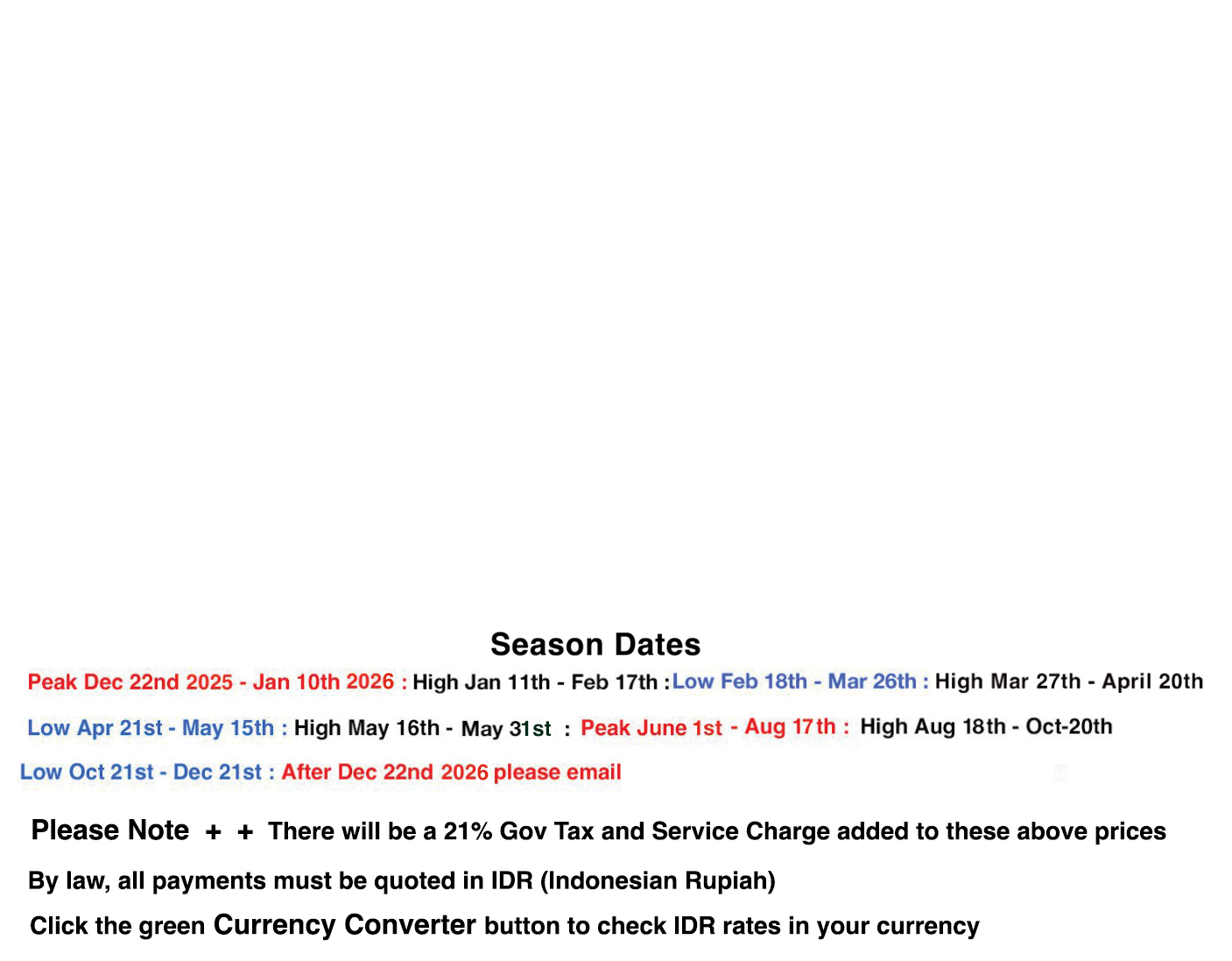 If THE LUXE BALI is not available at these times we will inform you of alternative dates around that time.